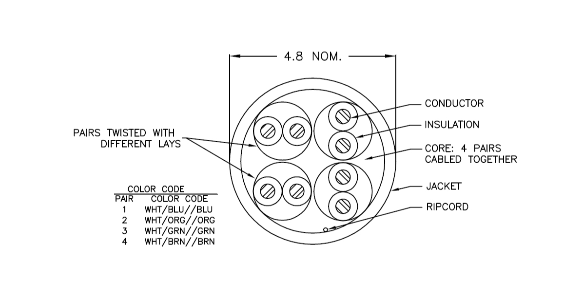 - Độ dày lõi tiêu chuẩn 24 AWG, solid, không có lớp vỏ bọc chống nhiễu.