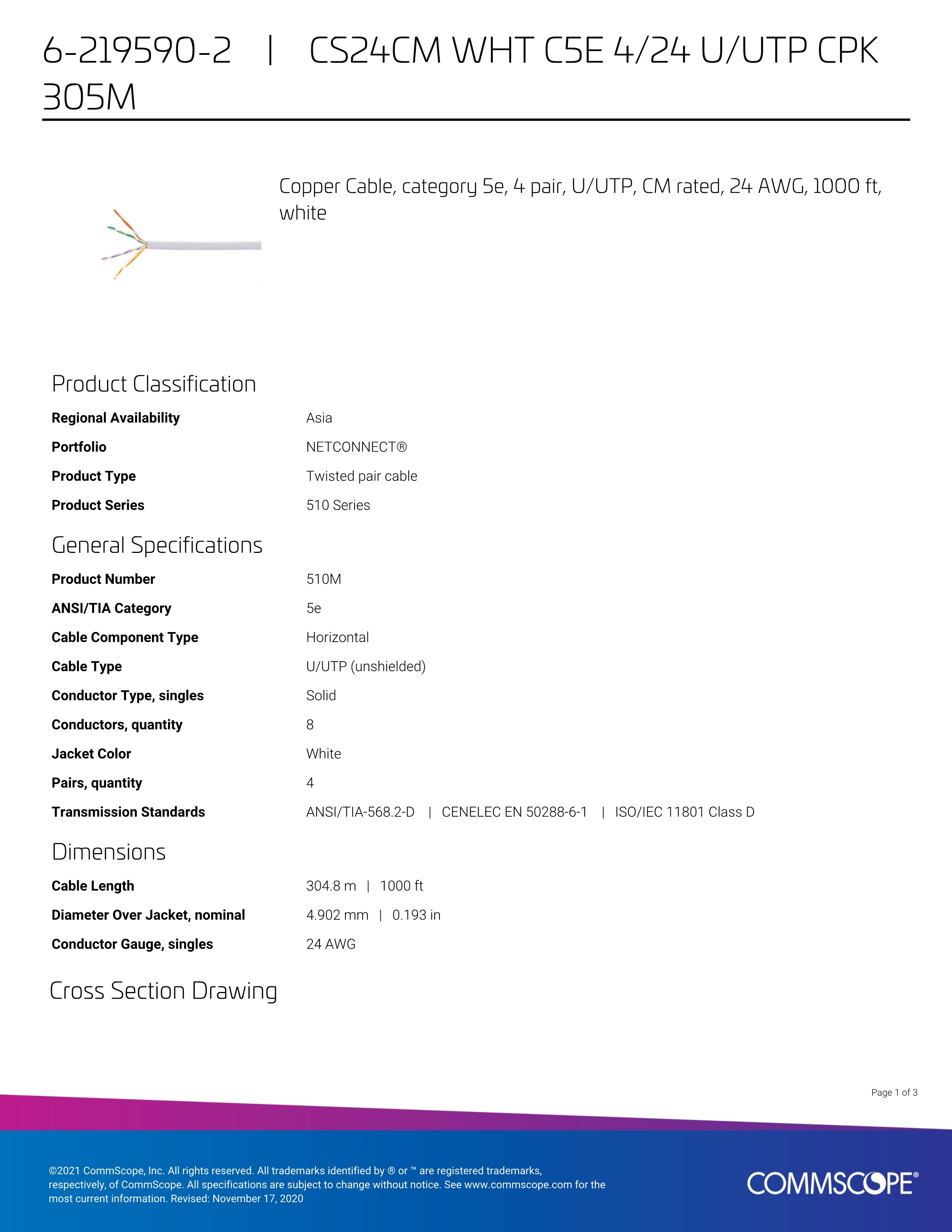 Dây mạng Cat5E UTP AMP được người dùng tin tưởng lựa chọn bởi độ uy tín đến từ thương hiệu Commscope cùng hàng loạt tiêu chuẩn truyền tải được áp dụng lên sản phẩm.