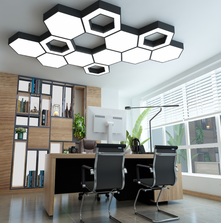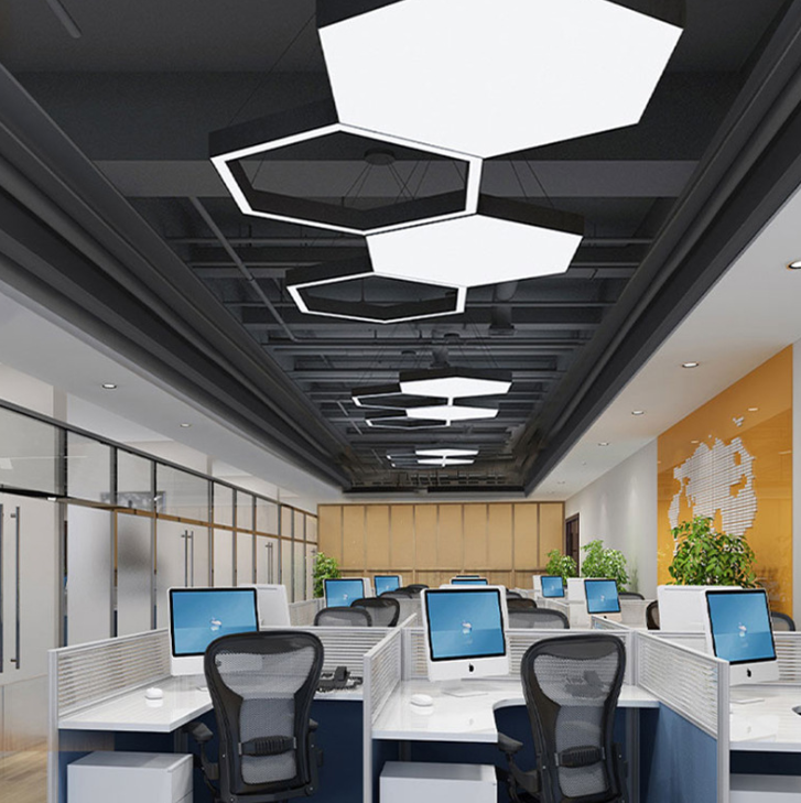 Đèn thả văn phòng lục giác là sản phẩm đèn thả treo decor văn phòng có thiết kế độc đáo, với hình dáng của mình, đèn thả văn phòng lục giác có thể ghép nối lại vào nhau một cách logic và liền mạch.