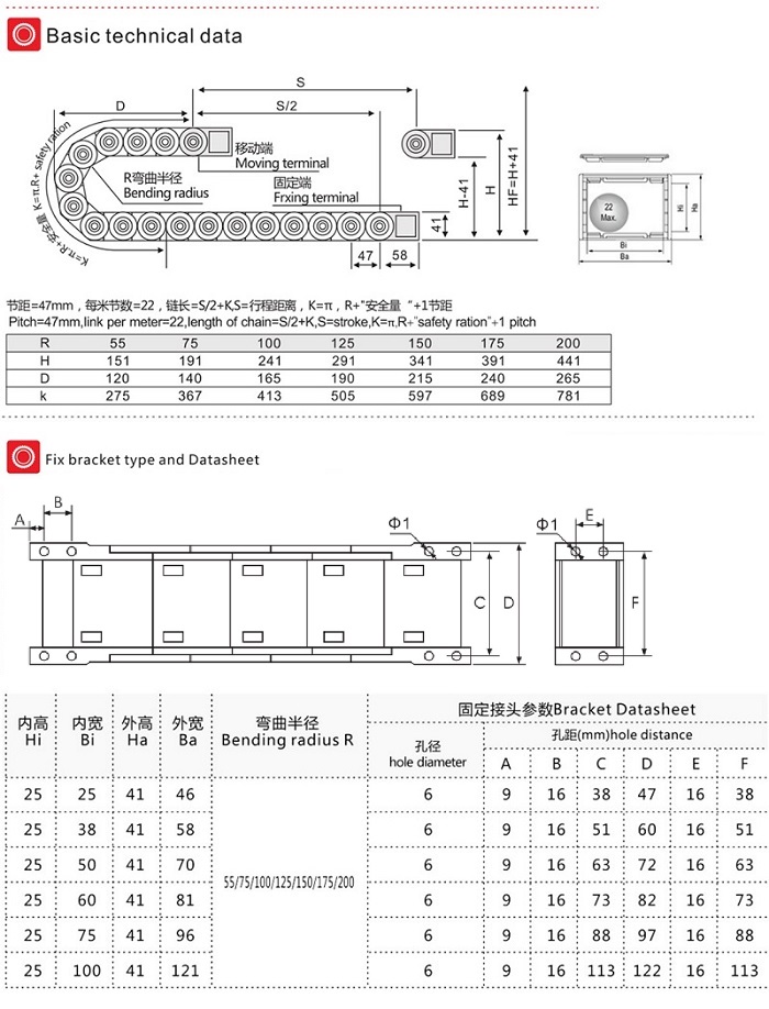 Xích có cấu trúc cầu kín, kết nối mắt xích dạng sanp-on, thiết kế lắp ráp thông minh dể dàng nối dài và tháo lắp, thuận tiện cho việc lắp đặt dây dẫn hay bảo trì bảo dưỡng dây cáp.
