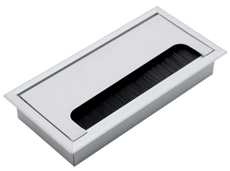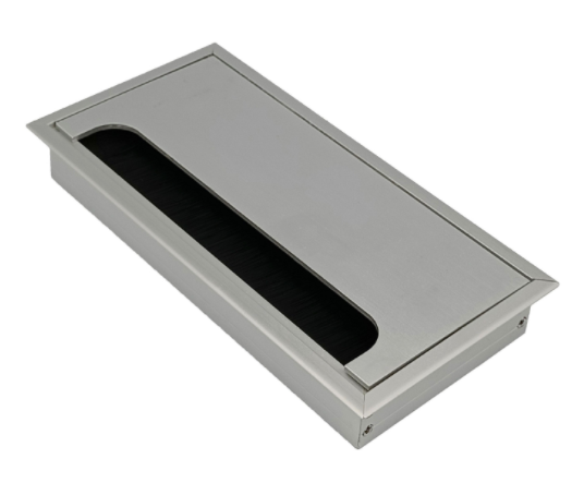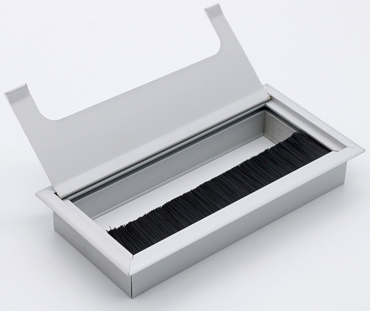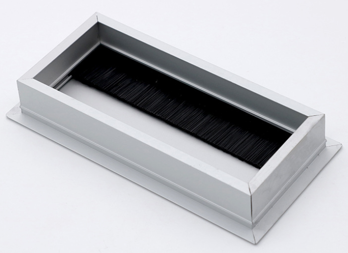 Được trang bị bộ phận ngăn bụi cấu tạo tương tự như đầu cọ vẽ, giúp Nắp điện âm bàn nhôm 160x80 vừa có thể luồn dây, vừa có thể đóng nắp thiết bị.