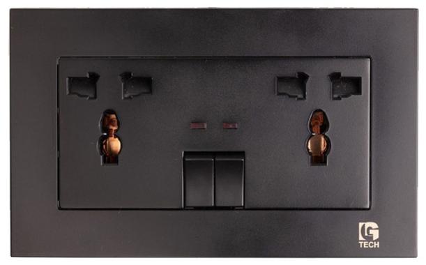 Ổ điện đôi 3 chấu màu đen LG-B200-0065 hỗ trợ tương thích hầu như các chuẩn phích cắm trên thị tường khi được trang bị chuẩn cắm đa năng UNIVERSAL.
