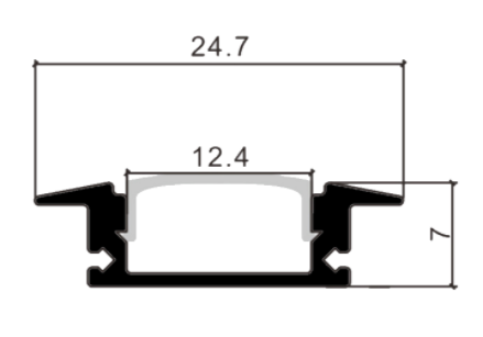 Thanh nhôm định hình LED T2507 hay còn gọi là thanh nhôm led có tai, sử dụng lắp đặt âm bề mặt, với 2 tai hai bên giúp người dùng che đi khuyết điểm lỗ khoét bên dưới.